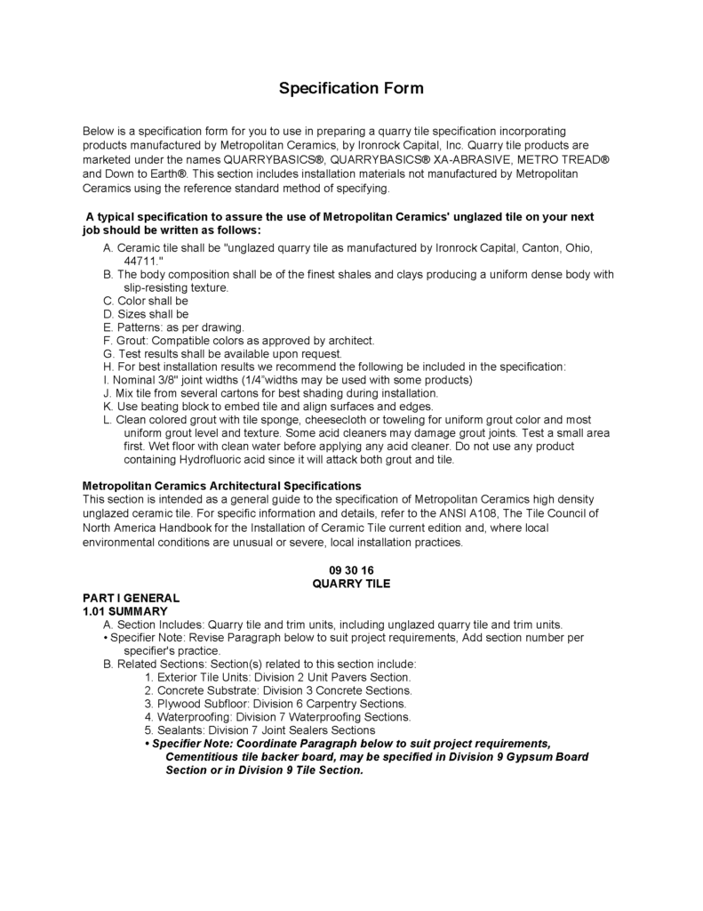 Please see the PDF links below for additional details on Brick Durability Standards and Tile Specifications: